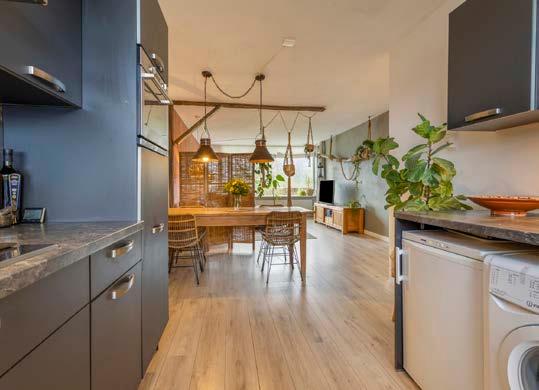 Daarnaast heb ik in dit appartement voldoende ruimte voor mijn hobbies: koken en klussen. In de garage heb ik de ruimte om mijn zelfgemaakte kast in elkaar te timmeren, en op het balkon ben ik regelmatig in de weer met bloemen en planten. De keuken biedt mij genoeg mogelijkheden om uitgebreid te koken voor familie en vrienden.