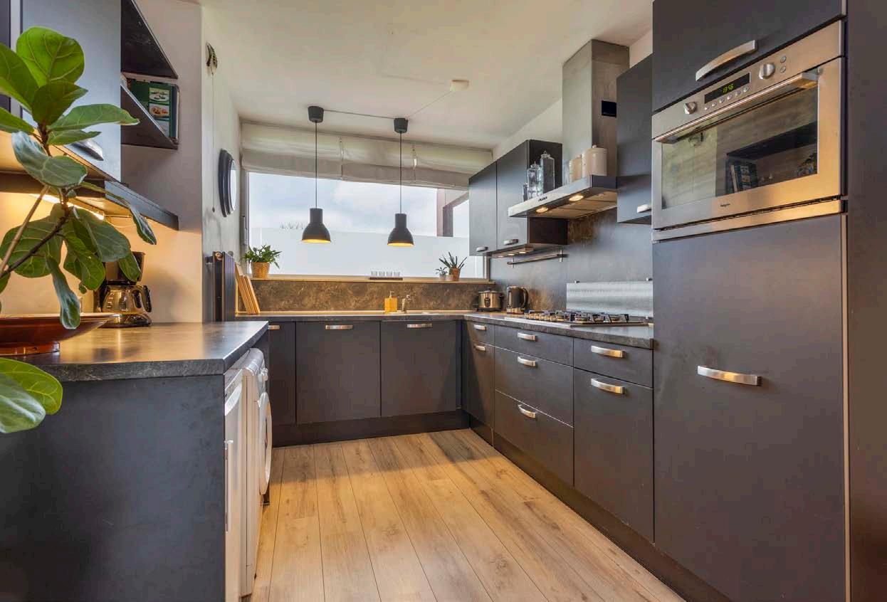 De keuken is basic doch modern afgewerkt. Je kunt hier dus rekenen op een vrij recent model dat nog steeds in prima staat verkeert qua afwerking en uitrusting. De keuken is uitgerust met diverse inbouwapparatuur, te noemen: Een gaskookplaat, afzuigkap, koelkast, combi-magnetron en een vaatwasser.