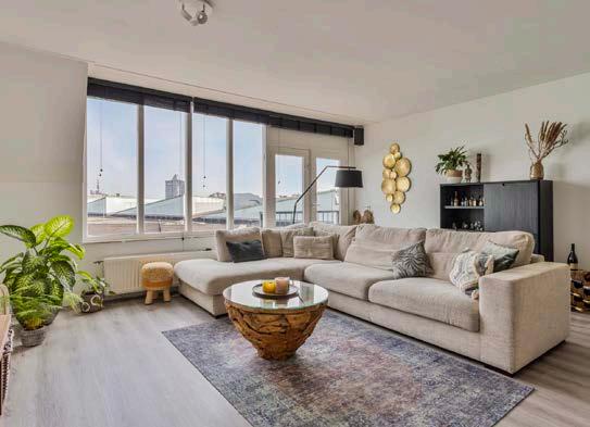 De woonkamer is ruim opgezet en erg licht door het grote raam. De woonkamer grenst aan de open keuken en heeft direct toegang tot het balkon.