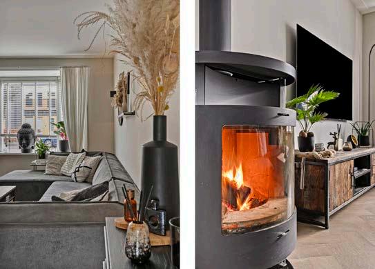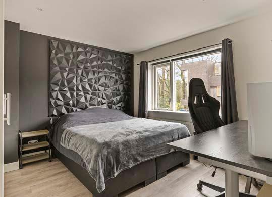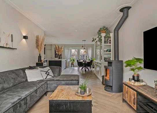 De woonkamer is ruim en licht, wat zorgt voor een prettige leefomgeving. Met een PVC-vloer in visgraatmotief en vloerverwarming geniet je van comfort en stijl. De gestuukte wanden geven de ruimte een moderne uitstraling en maken het geheel af.