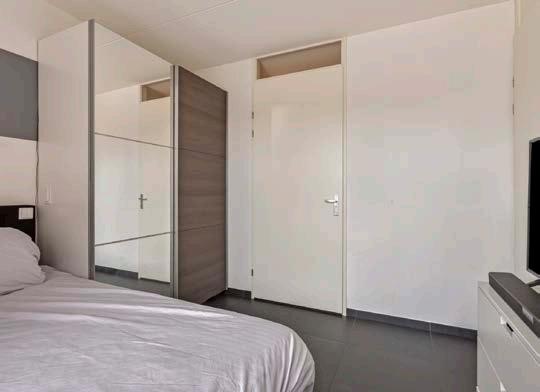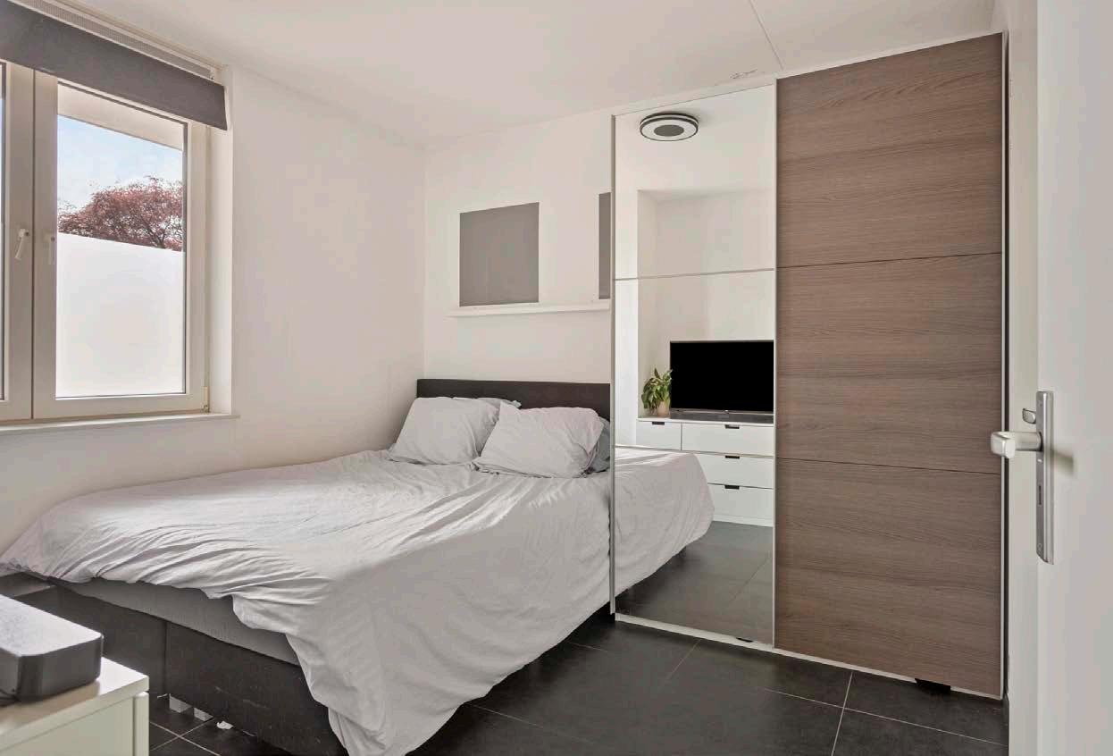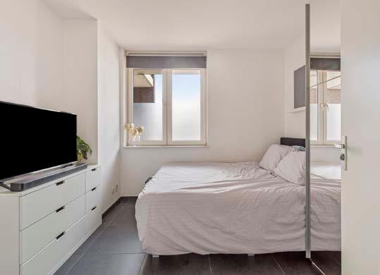 Via de hal is de slaapkamer te bereiken die ligt aan de achterzijde van het appartement. De slaapkamer is vrij ruim opgezet en beschikt ook over de tegelvloer met vloerverwarming.