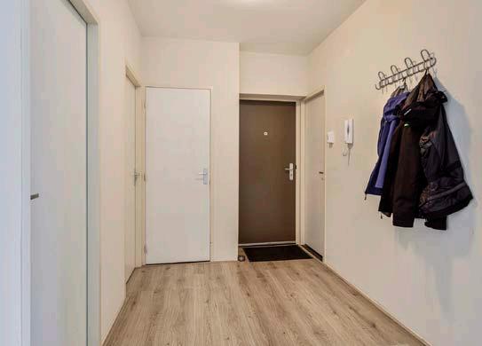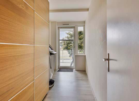 Bij aankomst in de centrale hal op de begane grond, word je verwelkomd door het bellentableau en de brievenbussen. Het trappenhuis leidt je naar de verdieping waar je het appartement binnenstapt via de hal. Deze hal biedt toegang tot alle vertrekken van de woning, te beginnen met de ruime en lichte woonkamer.