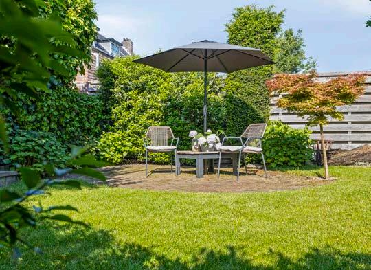 De grote tuin ligt op het noordoosten en ontvangt de hele dag zonlicht. Dit maakt het een fijne plek om buiten te zijn en te genieten van de frisse lucht.