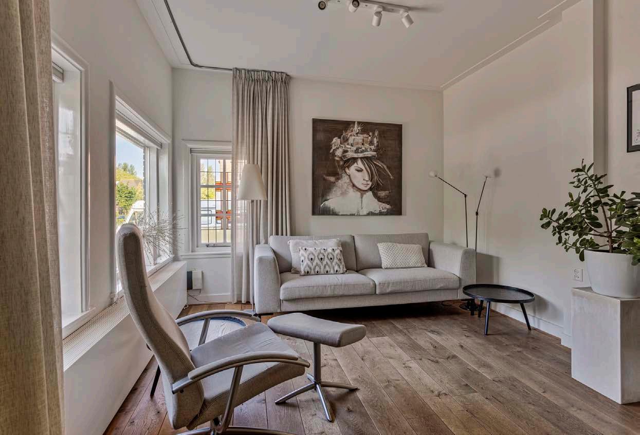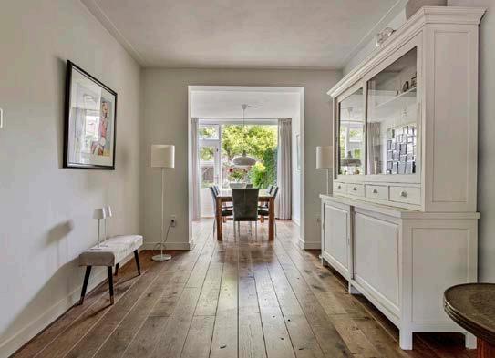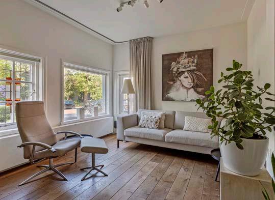 Deze woonkamer straalt warmte en sfeer uit. De mooie houten vloeren en de hoge plafonds creëren een ruimtelijk gevoel en ondertussen ook een sfeervolle uitstraling.