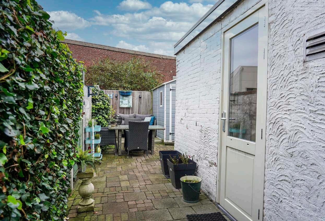 Via de keuken stap je de zonnige stadstuin gelegen op het oosten. Hier kun je heerlijk van het zonnetje genieten! De tuin is netjes ingericht met bestrating en er is voldoende ruimte voor een gezellige loungeplek. Ook beschik je over een vrijstaande losstaande kunststof berging met elektra. Ideaal voor het stallen van je fietsen en tuinmeubilair!