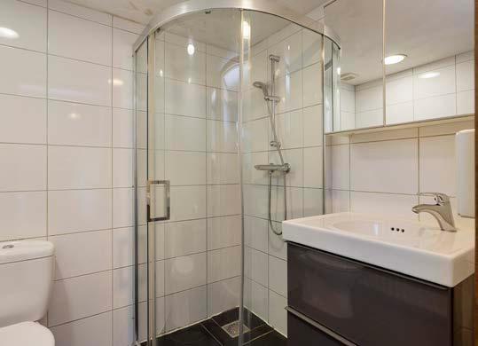 Via de keuken bereik je ook de moderne badkamer. Deze is uitgerust met een wastafelmeubel, een douche en een toilet.