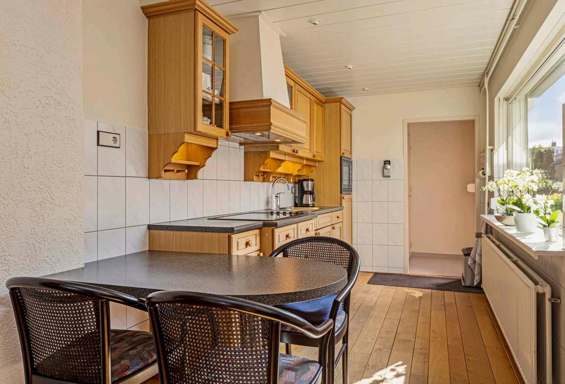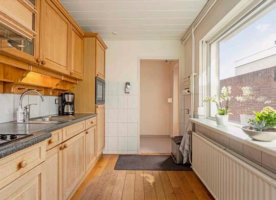 De keuken is ietwat gedateerd, maar keurig onderhouden en uiteraard voorzien van diverse inbouwapparatuur. In de keuken heb je voldoende ruimte om een gezellige eethoek te plaatsen waarbij je geniet van leuk zicht naar buiten.