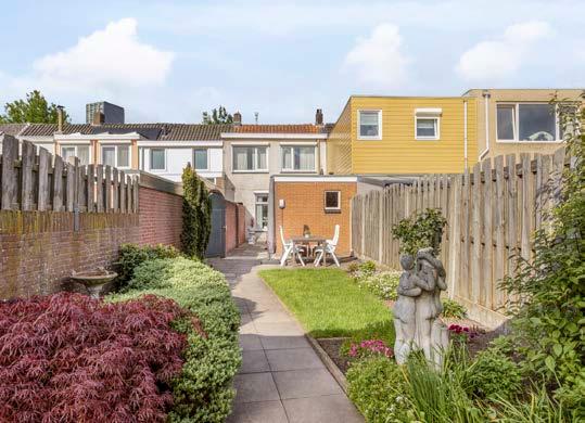 Wanneer je op zoek bent naar een tuin waar je de hele dag kunt genieten, dan is deze tuin op het oosten ideaal. Dankzij de ligging van de tuin, waarbij er geen blokkades zijn vanaf de zuidkant, kun je altijd genieten van de zon. De diepte van de tuin draagt hier nog eens extra aan bij. De tuin is keurig aangelegd en voorzien van gras en diverse zonneterrassen.