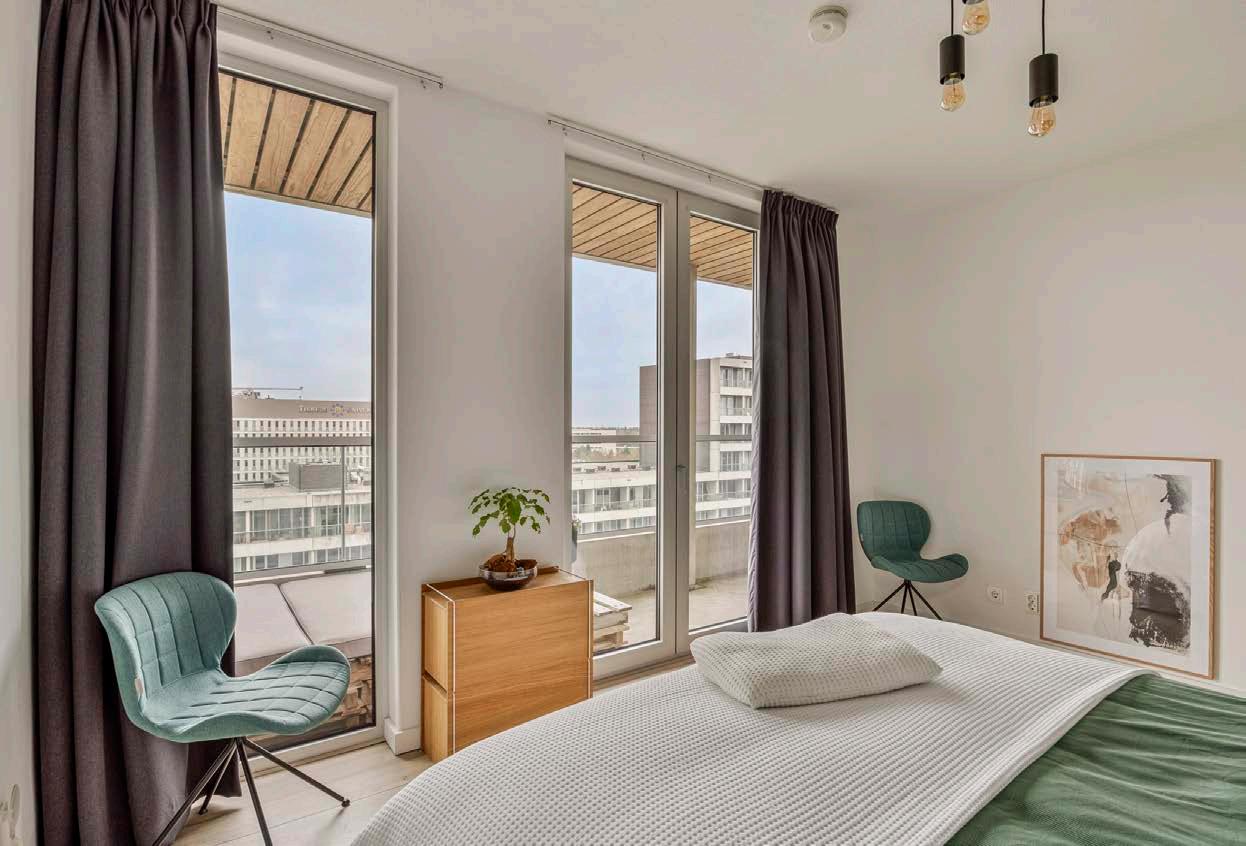 Een verdieping lager, op de 9e etage, vindt u de privévertrekken. Twee ruime slaapkamers bieden een vredige omgeving voor een goede nachtrust. Beide slaapkamers hebben tevens toegang tot een ruim balkon.