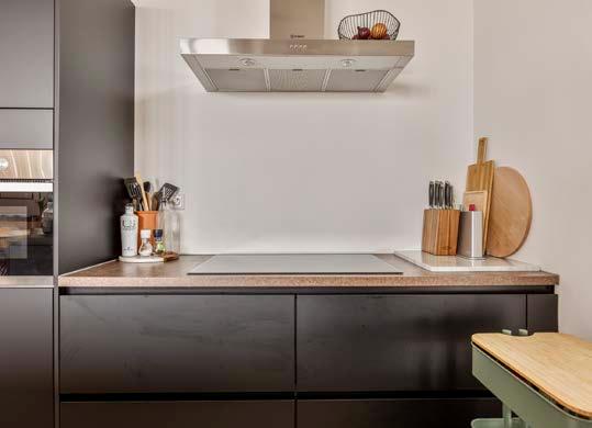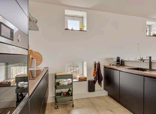 De moderne open keuken is het hart van het huis, waar koken en gezelligheid hand in hand gaan. De inductiekookplaat, combimagnetron, en de overige inbouwapparatuur maken het bereiden van maaltijden tot een waar genot. De keuken biedt tevens veel werk- en opbergruimte, waardoor u altijd een opgeruimd huis behoudt.