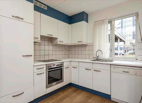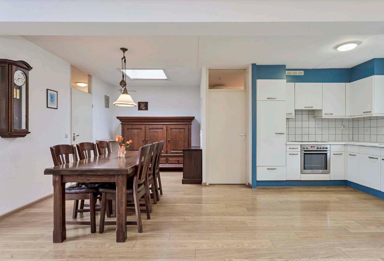 De functionele keuken is geplaatst in een L-opstelling en is voorzien van diverse apparatuur, te weten: een koelkast, keramische kookplaat, oven, afzuigkap en een vaatwasser. Wellicht kunt u met het oog op de toekomst uw droomkeuken realiseren.