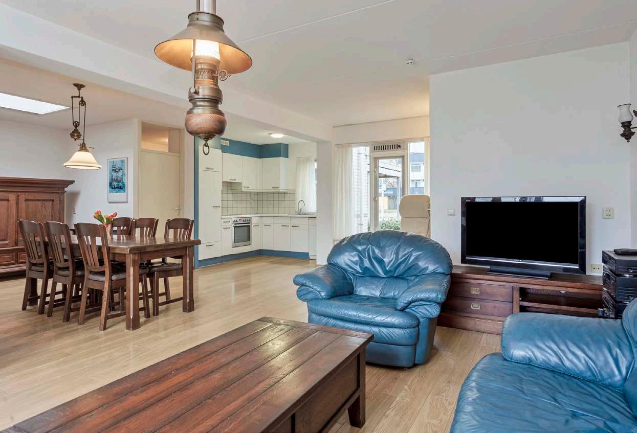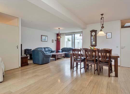 De woonkamer is van ruim formaat (44 m2) en heerlijk licht dankzij de schuifpui met plissé hor en de lichtkoepel. De ruimte is keurig afgewerkt en biedt een fijne basis om met verschillende interieurstijlen aan de gang te gaan. U heeft hier voldoende ruimte voor een grote zit-en eethoek waar het dagelijks leven zich grotendeels zal gaan afspelen. Het is belangrijk dat de indeling dan volledig bij uw wensen aansluit!