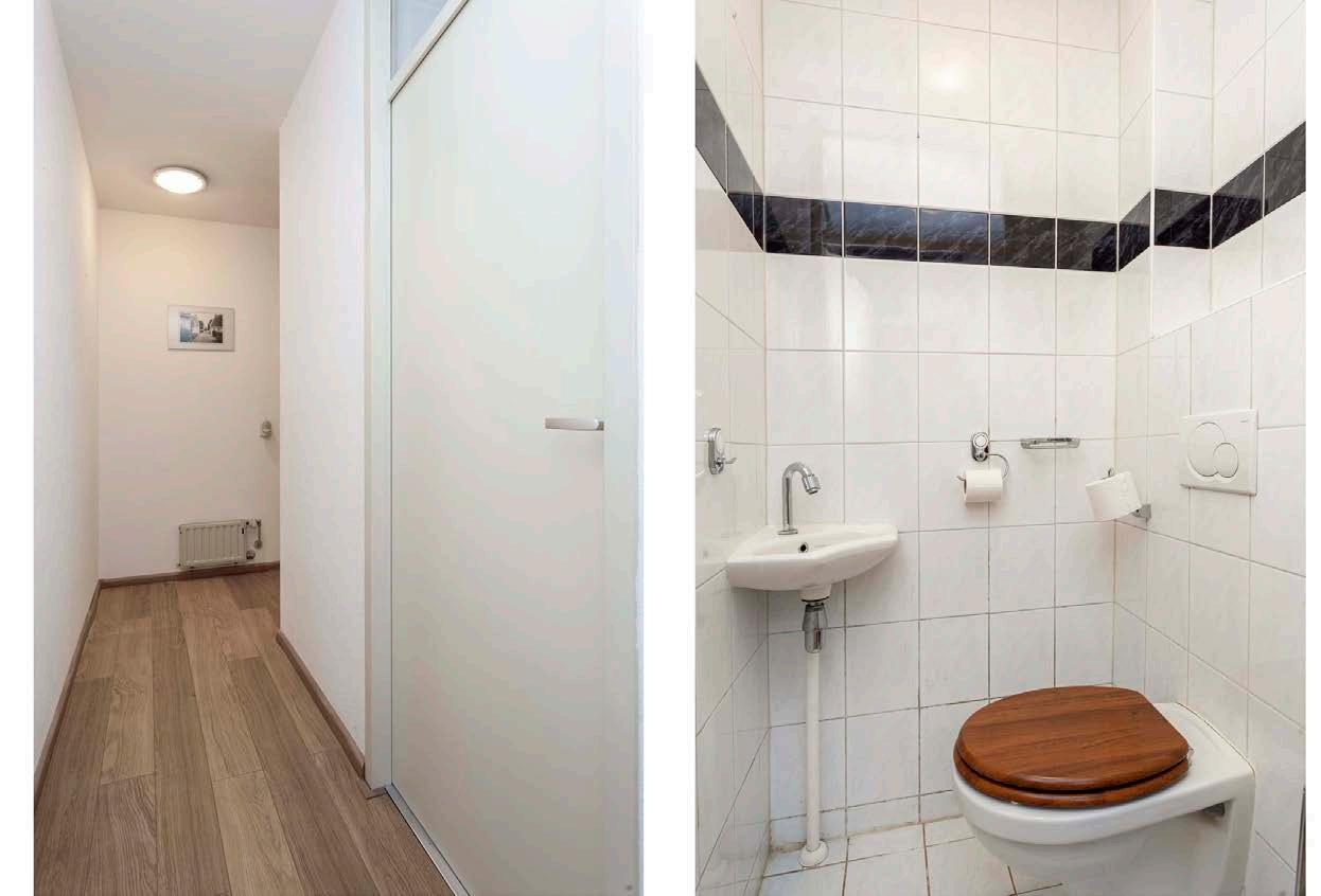 De bijkeuken is uitgerust met de aansluiting voor het witgoed, opstelplaats voor de huurboiler en ook heeft u voldoende ruimte om de bijkeuken als berging in te richten. Toegang tot de voorzijde van de woning.