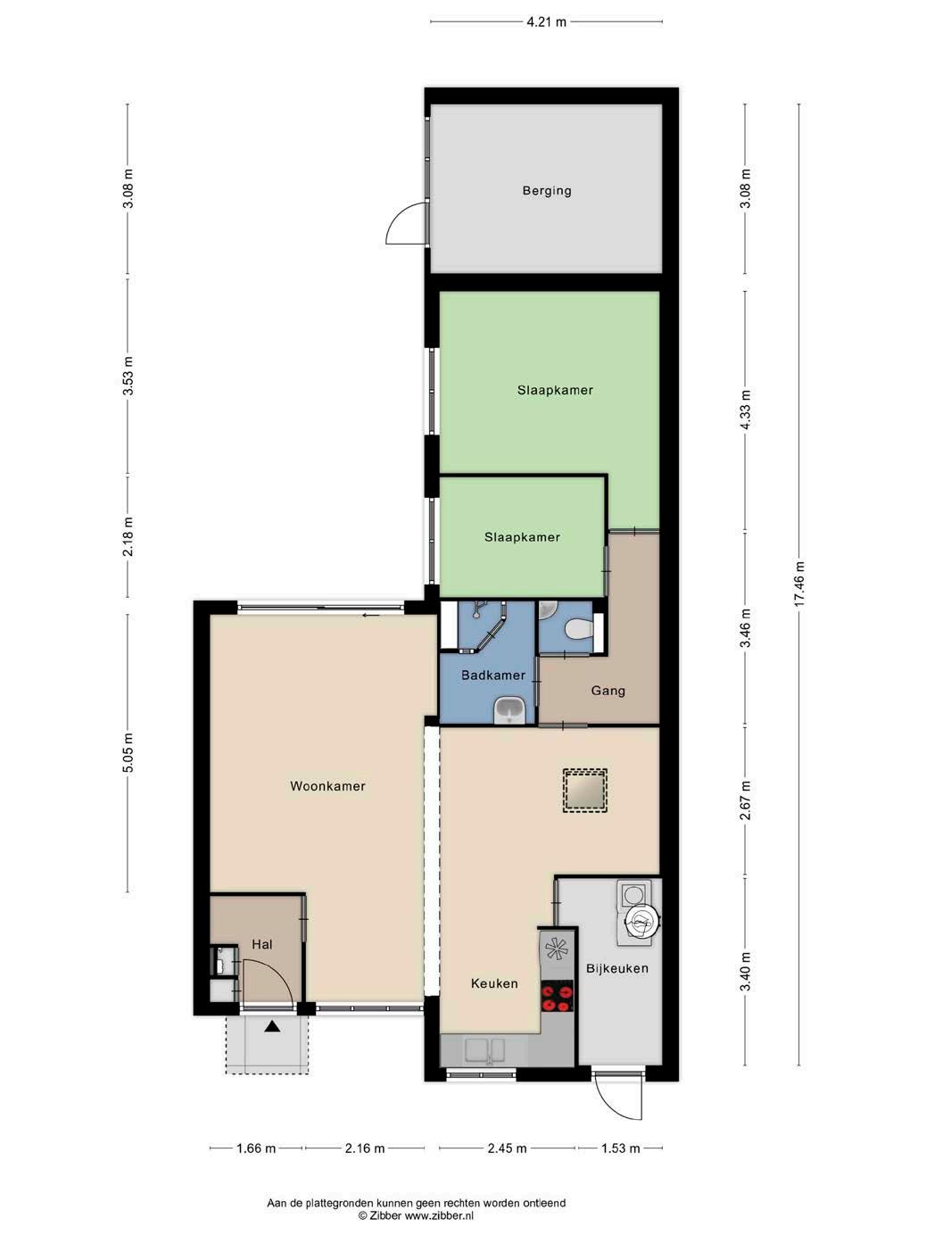 De bungalow is geheel gelijkvloers, dit betekent dat beide slaapkamers zich op de begane grond bevinden. De vertrekken variëren van formaat en zijn wederom naar eigen wens in te delen. Zo kunt u de vertrekken als masterbedroom en als kinder(werk) slaapkamer inrichten.