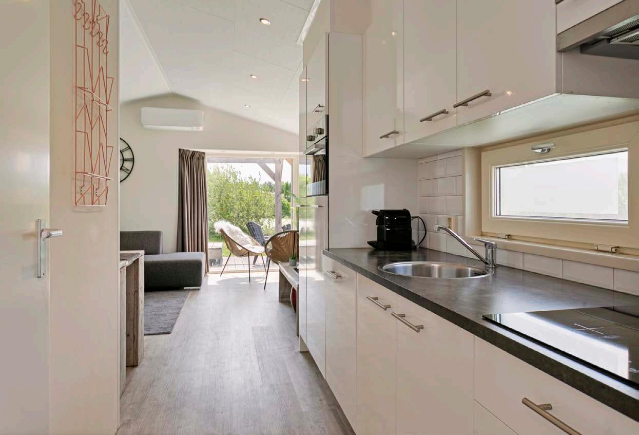 Het chalet biedt alle moderne comfort en hoewel compact heb je toch het gevoel heel royaal te wonen vanwege de vrije ligging en de prachtige tuin. Er zijn drie ruime eigen parkeerplaatsen en er is een grote berging voor fietsen, tuinspullen en een wasmachine en droger. Op het park mag je 365 dagen per jaar verblijven en kan je 24 uur per dag in,- en uitrijden zodat je totale vrijheid hebt. Ook is het toegestaan om onbeperkt te verhuren, zowel toeristisch als voor langere termijn en zijn huisdieren toegelaten.