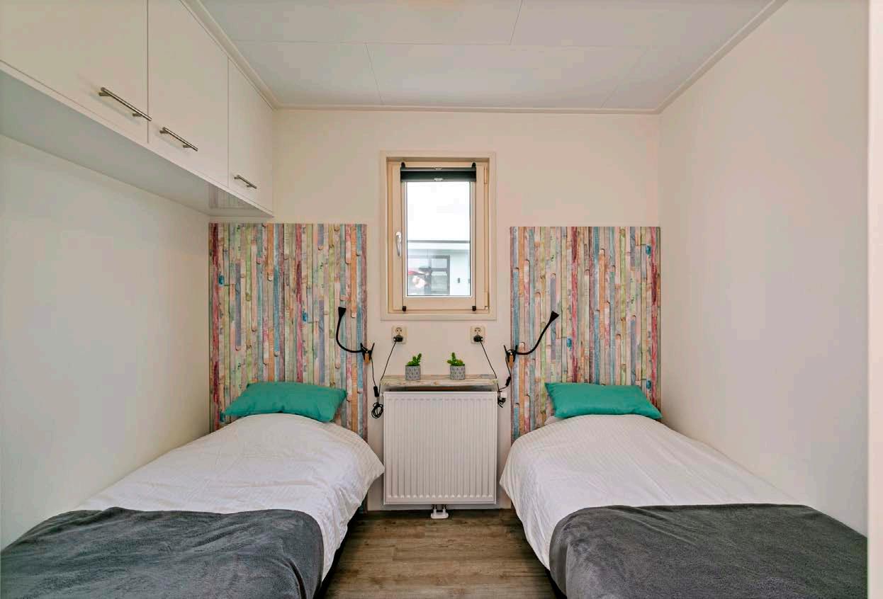 Het chalet beschikt over twee slaapkamers. De kleinere slaapkamer is voorzien van inbouwkasten en de grote slaapkamer heeft een grote schuifkast.