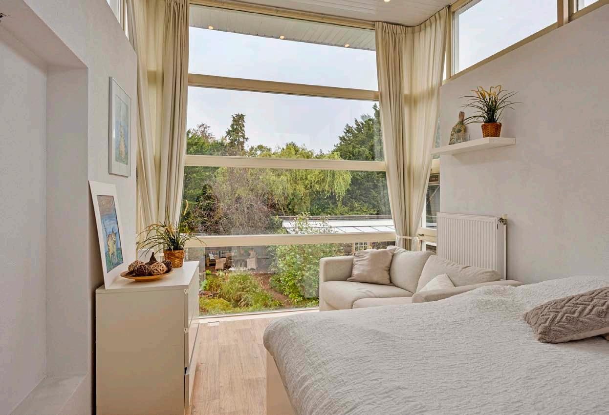 De slaapkamers zijn ontworpen met comfort in gedachten. Een van de slaapkamers bevindt zich in de uitbouw en heeft een indrukwekkende raampartij die een prachtig uitzicht op de tuin biedt. De andere twee slaapkamers zijn eveneens ruim en licht, ideaal voor een gezin of voor het inrichten van een thuiswerkplek. Alle kamers zijn voorzien van voldoende kastruimte, wat bijdraagt aan een georganiseerde en opgeruimde leefomgeving.