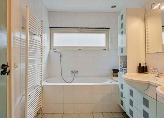 De badkamer is ruim en voorzien van alle gemakken. Het ligbad is perfect voor ontspannende avonden, terwijl de douche een snelle en verfrissende start van de dag biedt. De wasmachineaansluiting zorgt voor extra gemak, waardoor je niet naar een aparte ruimte hoeft voor je wasgoed. De badkamer is stijlvol afgewerkt en biedt een serene plek om even helemaal tot jezelf te komen na een drukke dag.