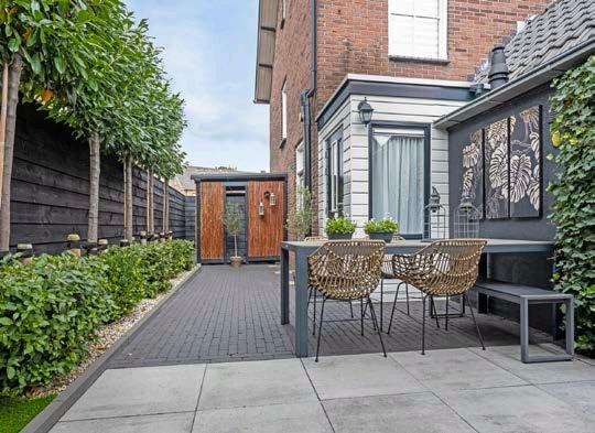 De onderhoudsvrije strak aangelegde voor- en achtertuin met groenblijvende leibomen maakt het plaatje compleet en zorgt voor fijne sfeer met veel privacy. Erg handig is dat er aan de overkant van de straat een oplaadpunt is voor elektrische auto’s.