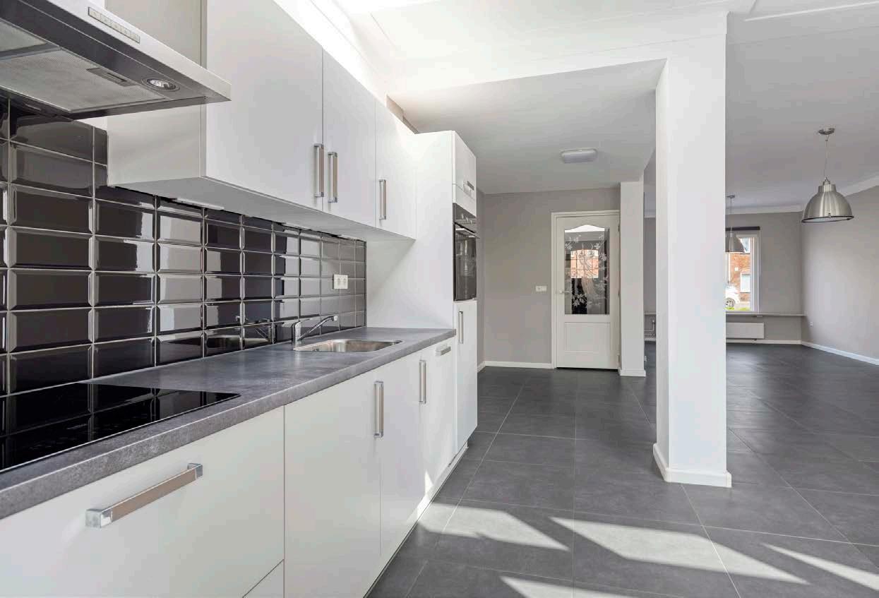 Een royale en moderne open keuken, voorzien van alle gemakken. Denk aan hoogwaardige inbouwapparatuur, perfect geïntegreerd in een strakke, eigentijdse keukenopstelling.