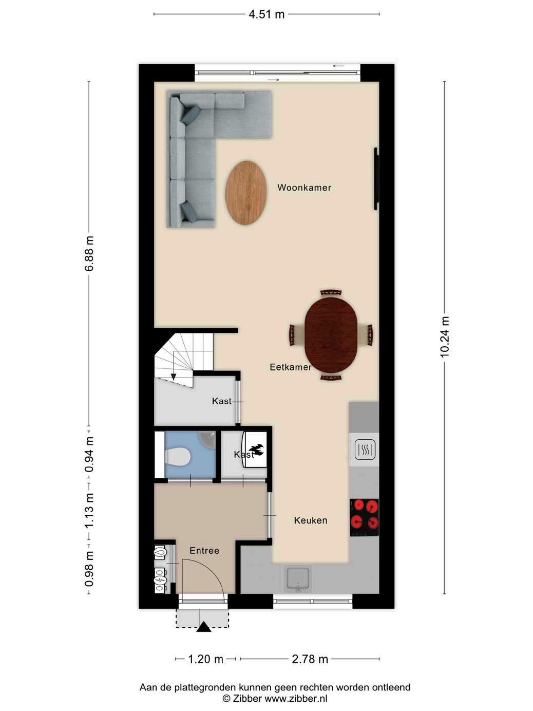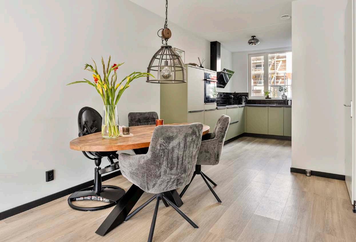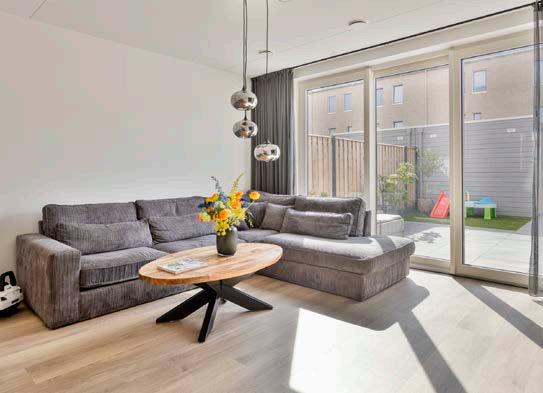 De entree leidt naar een lichte en ruime woonkamer, waar grote ramen veel natuurlijk licht binnenlaten. Dankzij de kunststof kozijnen met tripleglas geniet je hier van optimale isolatie en geluidsdemping.