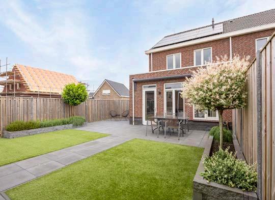 Stel je voor: een tuin die altijd klaarstaat om je te verwelkomen zonder dat je er veel tijd aan kwijt bent. Deze onderhoudsvrije tuin op het zuidwesten is een zonnige oase waar privacy en ontspanning centraal staan. Het is de ideale plek voor zomerse barbecue-avonden of om simpelweg te genieten van een rustige middag.