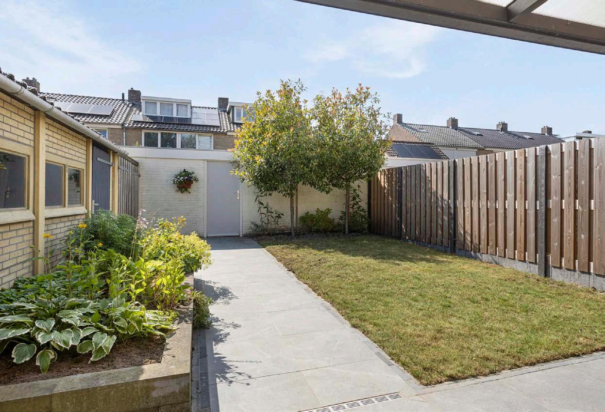 De tuin, gelegen op het westen, is een ware parel die weinig onderhoud vergt. Dankzij de handige achterom heb je altijd gemakkelijk toegang, ideaal voor fietsen en tuinbenodigdheden. De overkapping biedt een schaduwrijke plek om te ontspannen en te genieten van de buitenlucht, zelfs tijdens minder zonnige dagen.