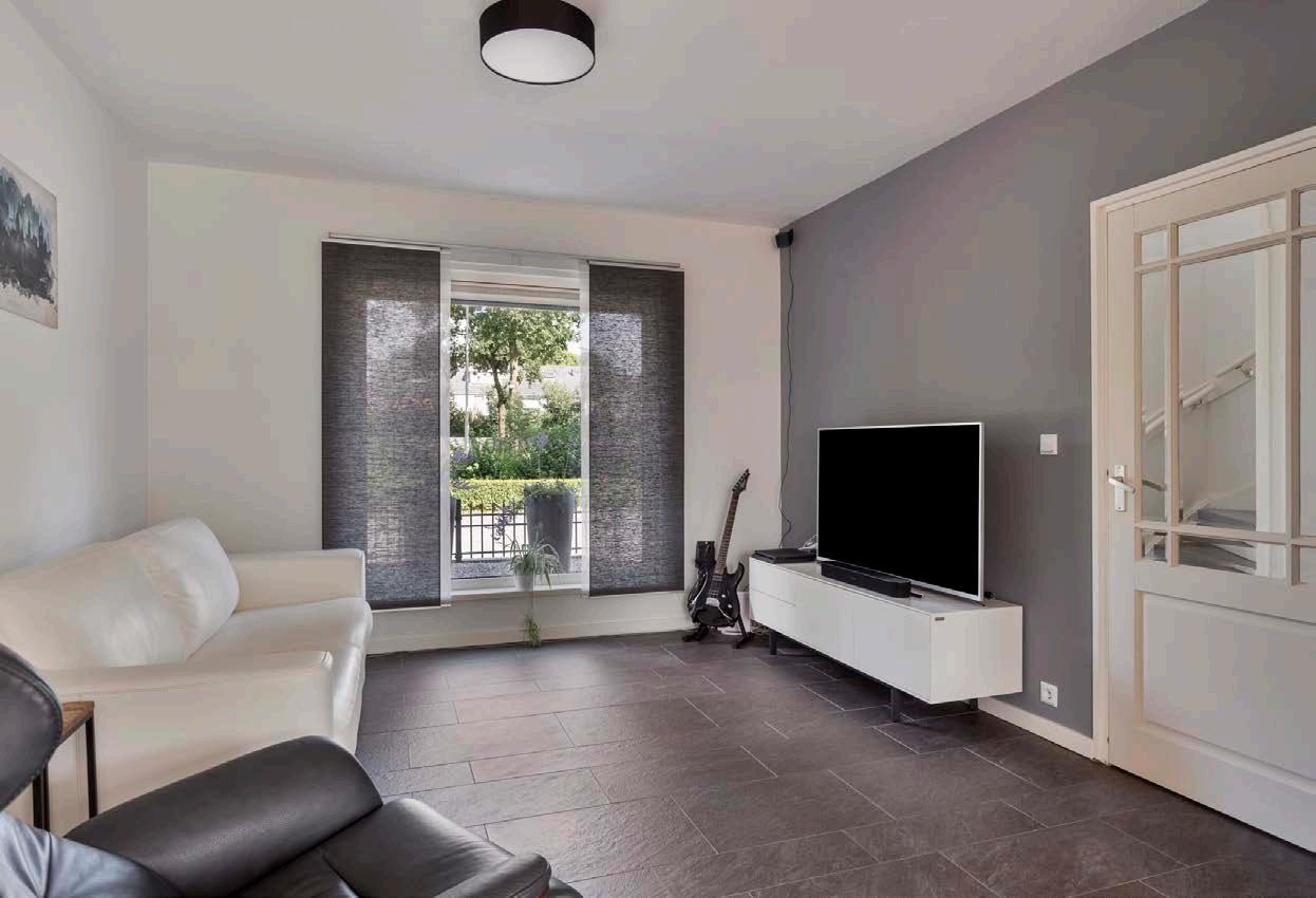 Deze royale doorzon woonkamer is een ware oase van licht en ruimte. Dankzij de grote ramen en openslaande tuindeuren stroomt het daglicht overvloedig naar binnen, waardoor je elk seizoen kunt genieten van een aangename en gezellige sfeer. De stijlvolle tegelvloer is niet alleen esthetisch aantrekkelijk, maar ook praktisch en gemakkelijk in onderhoud. Of je nu ontspant met een boek, een gezellige avond met vrienden organiseert of met het gezin een film kijkt, deze woonkamer biedt het perfecte decor.