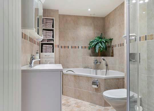 De badkamer is netjes en compleet ingericht, met een ligbad voor ontspanning, een wastafelmeubel voor al je dagelijkse benodigdheden, een toilet en een douche. De ruimte is praktisch en biedt alles wat je nodig hebt voor je ochtendroutine of een relaxmoment aan het einde van de dag.
