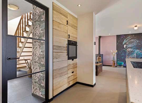 Achter het kookeiland heb je eveneens vrij uitzicht op de diepe tuin, ideaal om een oogje in het zeil te houden met jonge kinderen. In dit huis voel je je vrij wonen, maar zit toch in het hart van het dorp. Speciale moment is wanneer de zon onder gaat en de mooie roze/ oranje lucht tevoorschijn komt achter de molen. Deze weerkaatst in de hele woonkamer. Dat voelt voor ons als thuiskomen!