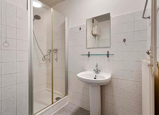 De badkamer is eenvoudig doch netjes afgewerkt en biedt alles wat je nodig hebt. Met een praktische douchecabine, een toilet en een vaste wastafel ben je van alle gemakken voorzien. De neutrale kleuren en strakke afwerking zorgen voor een frisse uitstraling, terwijl de functionele indeling ervoor zorgt dat je de ruimte optimaal kunt benutten. Hier kun je je heerlijk opfrissen en ontspannen na een drukke dag.