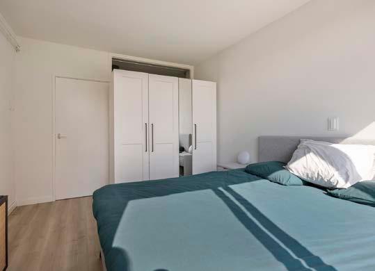 Aan de achterzijde van het appartement bevindt zich de masterbedroom, een comfortabele en rustgevende ruimte met vaste kastruimte. De vloer is voorzien van zacht tapijt, en de wanden zijn gestuct en afgewerkt met glasvliesbehang. Deze slaapkamer biedt alles wat je nodig hebt voor een goede nachtrust.