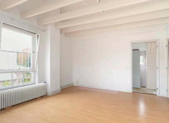 Daarnaast bevinden zich de dichte keuken, de werkkamer, de slaapkamer met aangrenzend een badkamer en een separaat toilet.