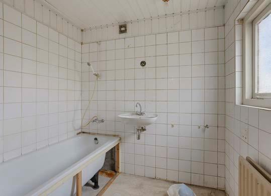 Achter de bijkeuken ligt de badkamer. Deze is ook toe aan een complete renovatie. Laat je fantasie de vrije loop… Een riante regendouche of een heerlijk ligbad? Het is helemaal aan jou!