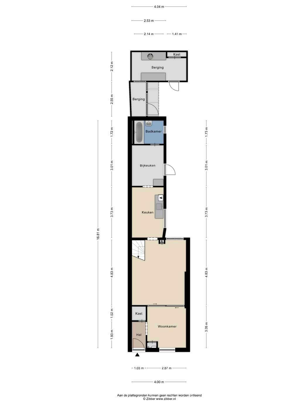 In de bijkeuken bevindt zich de verouderde CV-ketel die direct aan vervanging toe is en de aansluiting voor de wasapparatuur. Verder ligt er in zowel de badkamer, bijkeuken als keuken een tegelvloer.