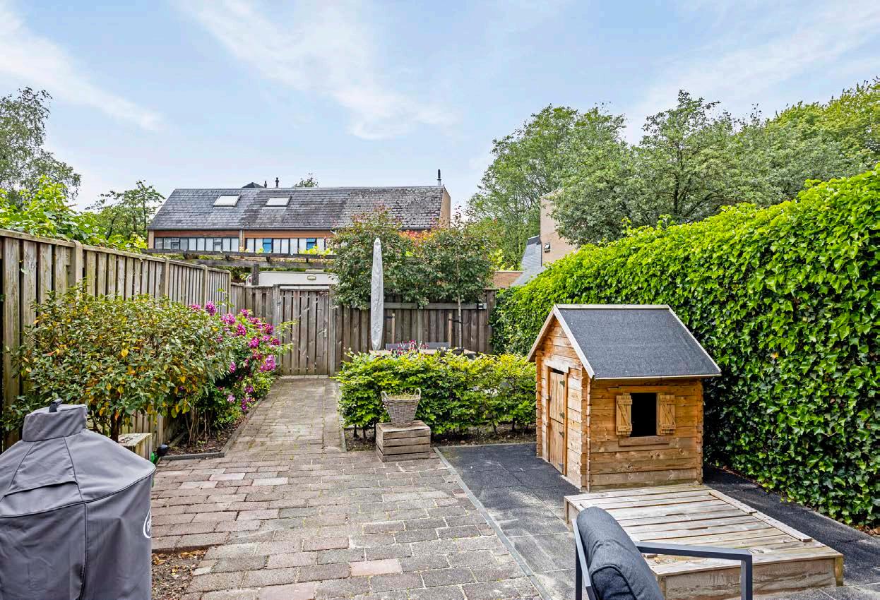 De tuin op het zuidwesten is een van de pareltjes van deze woning. Hier kun je de hele middag en avond genieten van de zon, wat ideaal is voor gezinnen die graag buiten zijn. De tuin biedt voldoende ruimte voor een terras, een speelplek voor de kinderen en eventueel een moestuin. Of je nu wilt barbecueën, tuinieren of gewoon wilt ontspannen met een boek, deze tuin biedt het allemaal. De gunstige ligging zorgt ervoor dat je optimaal kunt genieten van het buitenleven, terwijl je toch privacy hebt.