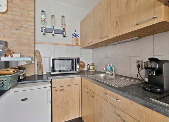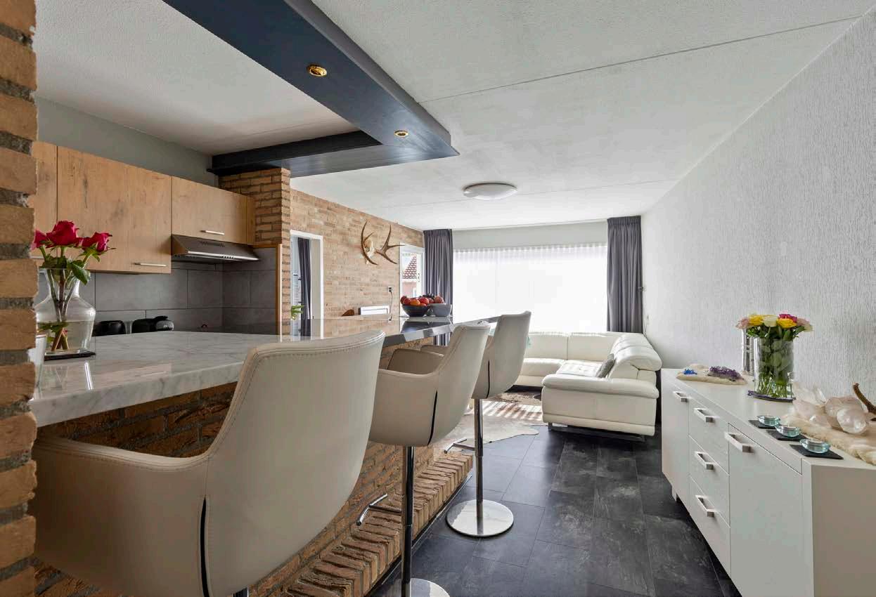 Aan de woonkamer grenst de open, moderne keuken. Strak en praktisch ingedeeld, met alles wat je nodig hebt direct binnen handbereik. Inclusief een stijlvolle eetbar, waar je niet alleen een snelle maaltijd kunt nuttigen, maar ook het perfecte plekje hebt om bij te praten met vrienden of familie.