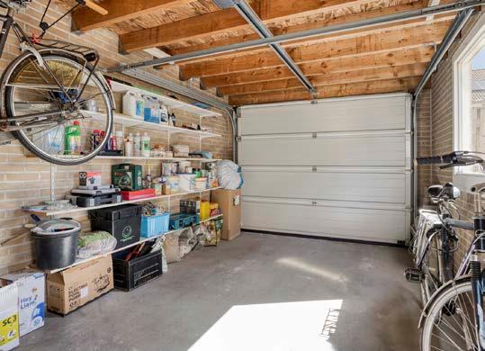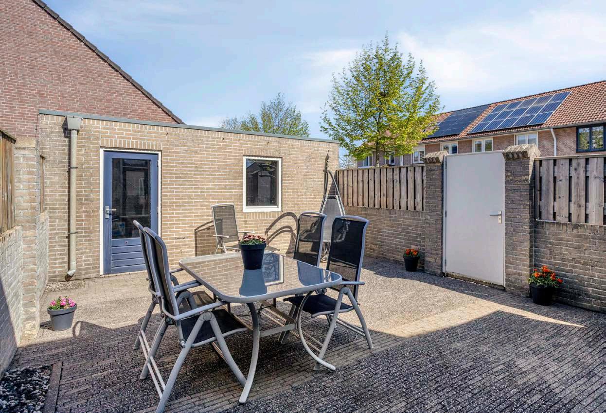 De achtertuin is compact maar praktisch ingericht met sierbestrating en een goede erfafscheiding. Hier kun je met minimale moeite een heerlijke buitenruimte creëren om te relaxen of gezellig samen te eten. De grote poort aan de zijkant maakt de tuin eveneens functioneel en bereikbaar. Achterop het perceel tref je de ruime vrijstaande garage, die met zijn zijraam en elektrische kanteldeur een enorm pluspunt is. Niet alleen handig voor je auto, maar ook ideaal als opslag of klusschuur.