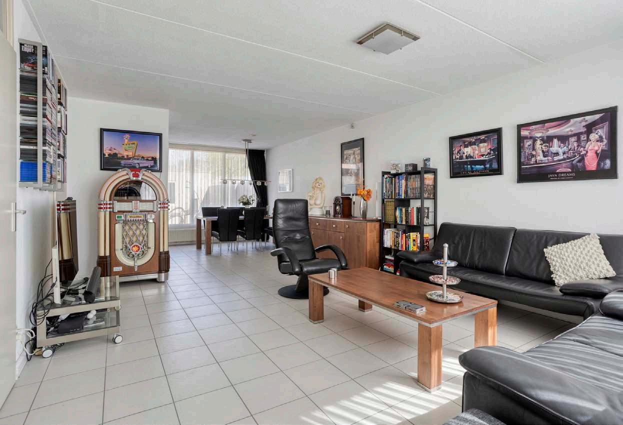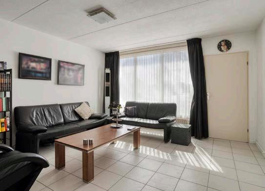 Eenmaal door de hal kom je in de lichte woonkamer, waar grote ramen zowel aan de voor- als achterzijde zorgen voor een fijne inval van natuurlijk daglicht. Verder afgewerkt met een prima lichte plavuizenvloer.