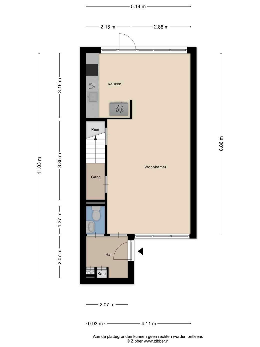 Je wordt welkom geheten in een ruime entree met plek voor een garderobe, de meterkast en een nette toiletruimte met toilet en fontein.