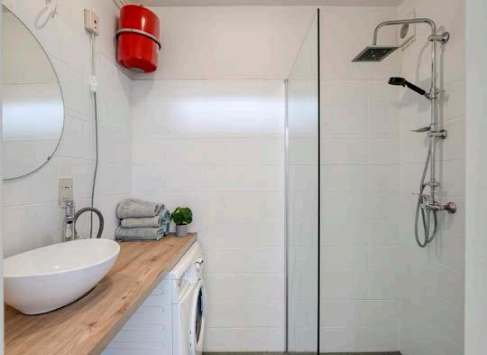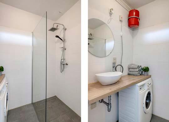 De badkamer is fris en modern, voorzien van een comfortabele inloopdouche en een praktisch badmeubel met wastafel – perfect om de dag fris te beginnen of ontspannen af te sluiten. De separate toiletruimte is ook een fijne functie, afgewerkt met een hangend closet en wastafeltje.