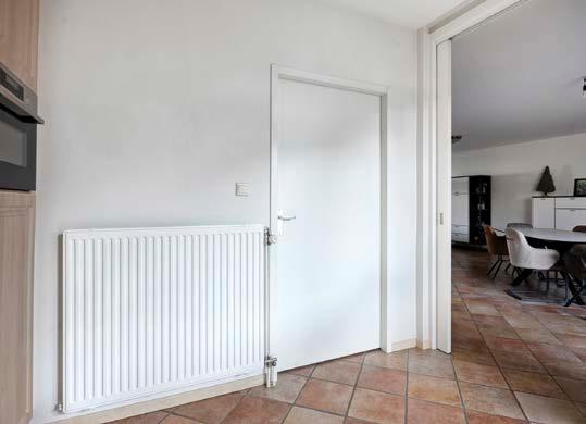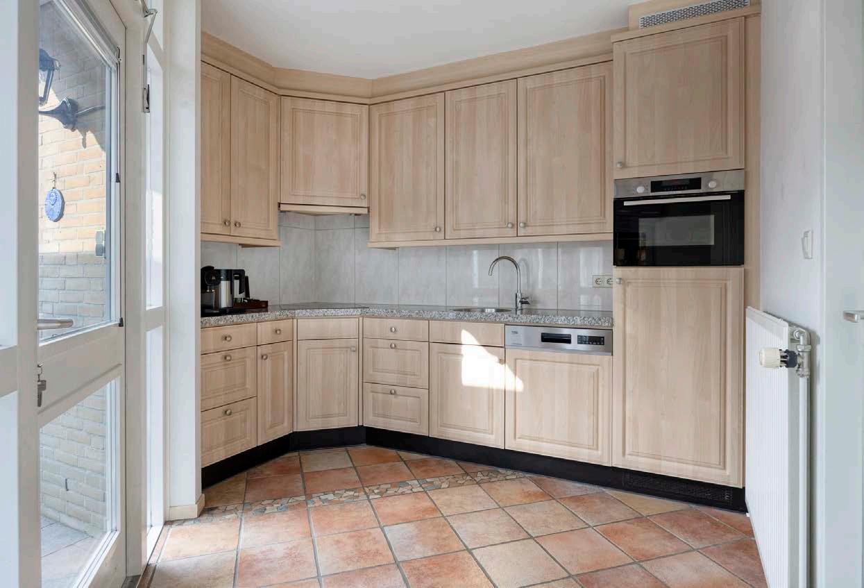 De dichte keuken bevindt zich aan de zijkant van de eetkamer en is volledig uitgerust met degelijke inbouwapparatuur en royaal aan werken opbergruimte. Hier wordt koken een waar genoegen. De bijkeuken grenst aan de keuken waar de was en droog installaties zijn verwerkt.
