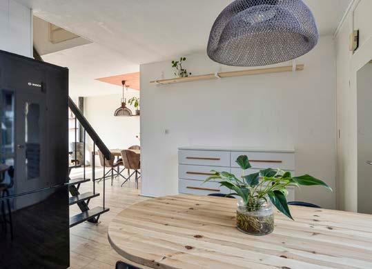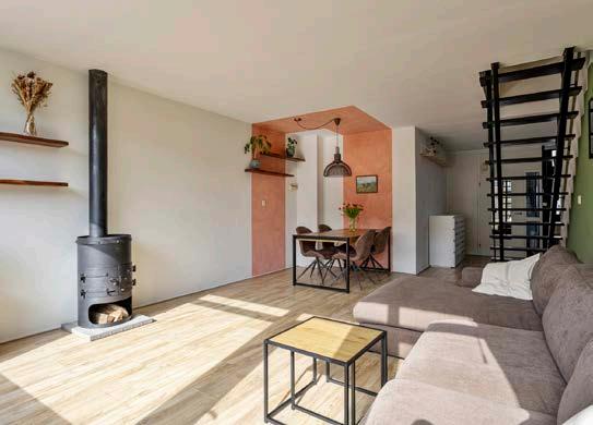 Bij binnenkomst valt direct de ruime opzet en het prettige licht in de woonkamer op. De brede achterpui zorgt voor een natuurlijke verbinding met de tuin en laat het daglicht royaal binnen. Hierdoor ontstaat een open en ontspannen leefruimte waar je zowel kunt leven als ontvangen.
