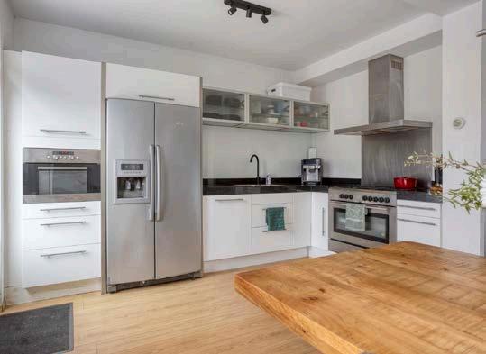Een culinaire droom! Deze halfopen hoekkeuken is voorzien van een composiet werkblad, een breed 5-pits gasfornuis, een combioven, vaatwasser, afzuigkap en een luxe rvs Amerikaanse koelkast. Alles wat je nodig hebt om de chef-kok in jezelf los te laten. Koken wordt hier een plezier, met veel werk- en opbergruimte én een fijn uitzicht op de tuin.