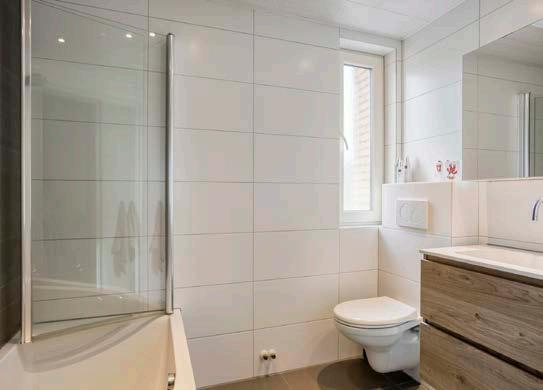 De badkamer is een echte eye-catcher: luxueus, modern en van alle gemakken voorzien. Het bad is de perfecte plek voor dat verdiende relaxmoment na een lange dag.