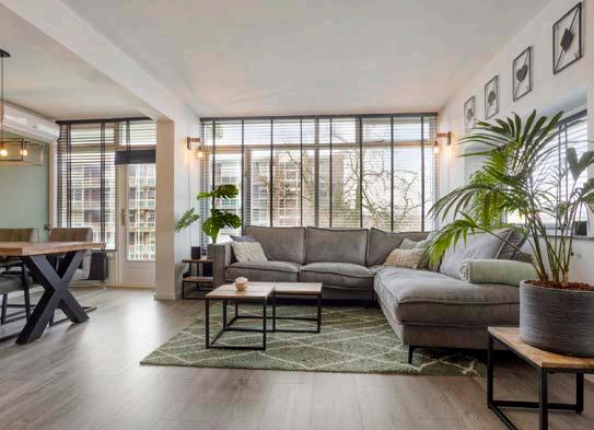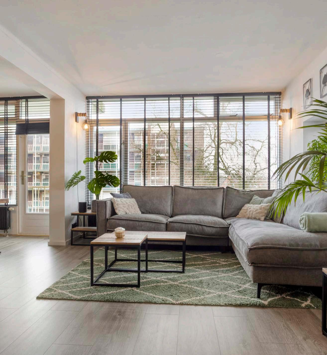 De ruime en zeer lichte woonkamer bevindt zich aan de achterzijde van het appartement. Dankzij de grote ramen komt hier veel natuurlijk licht binnen, wat de ruimte extra aangenaam maakt. Hier is voldoende plaats voor een zithoek én een gezellige eetplek. Vanuit de woonkamer loop je zo naar het tweede balkon, gelegen op het zonnige zuidwesten. Met uitzicht op de groene omgeving is dit een heerlijke plek om te ontspannen in de namiddagzon of om ’s avonds gezellig buiten te zitten.