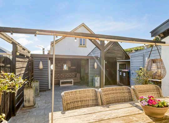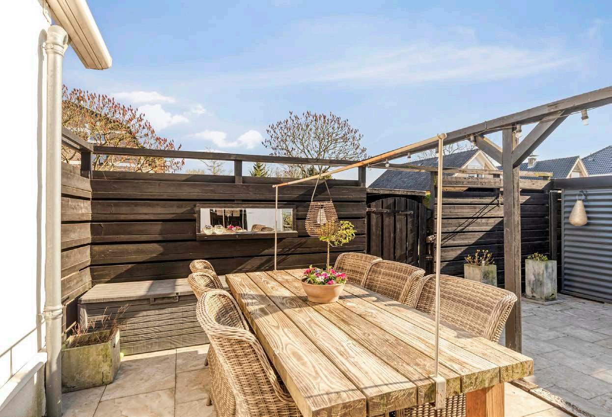 Via de bijkeuken loop je zo de zonnige achtertuin in, die op het zuiden ligt. Hier kun je het hele jaar door genieten. De overkapping biedt schaduw in de zomer en een fijne plek om beschut te zitten op frisse dagen. De tuin is niet te groot, maar precies goed om te ontspannen zonder dat je uren kwijt bent aan onderhoud.