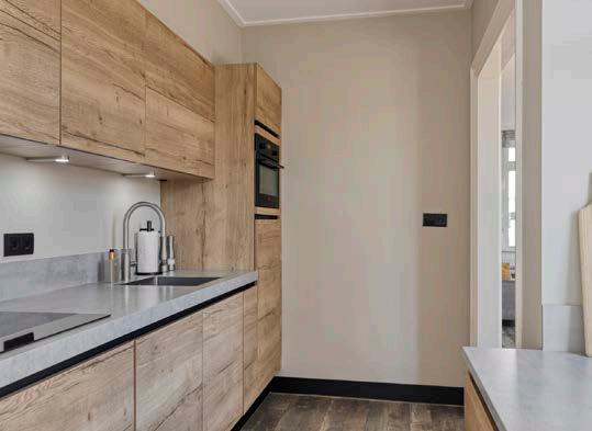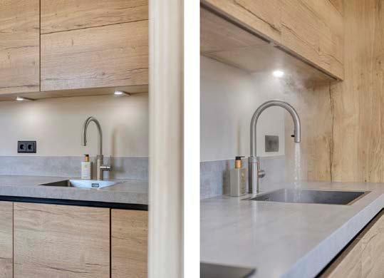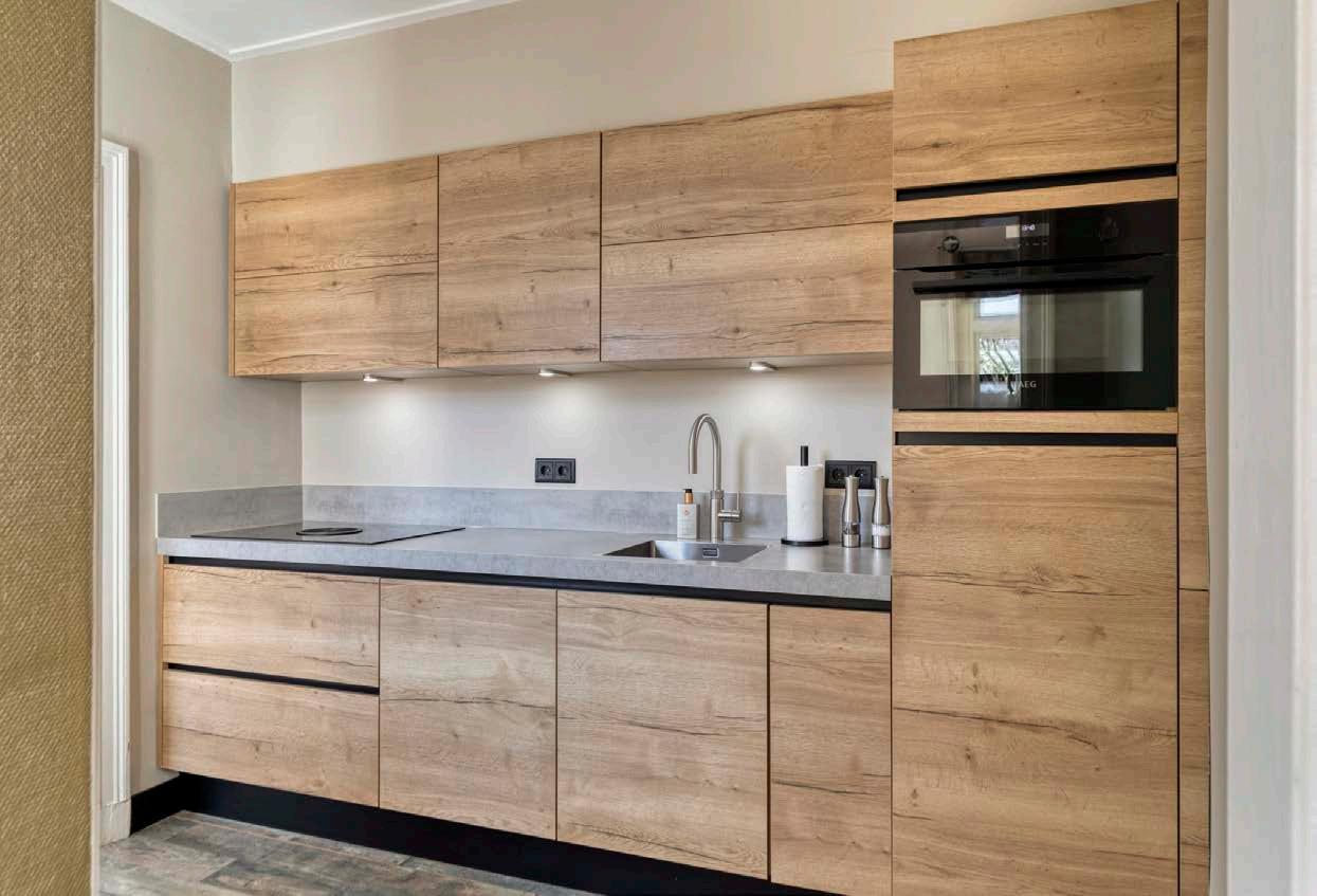 De keuken aan de achterzijde is in 2022 geplaatst en is modern en slim ingericht. Met inbouwapparatuur zoals een Bora inductiekookplaat, oven, vaatwasser, een Quooker en koelkast is koken niet alleen praktisch, maar ook leuk. De aangrenzende bijkeuken biedt extra opslagruimte en een plek om je wasmachine en droger te plaatsen.