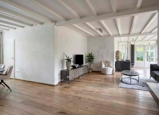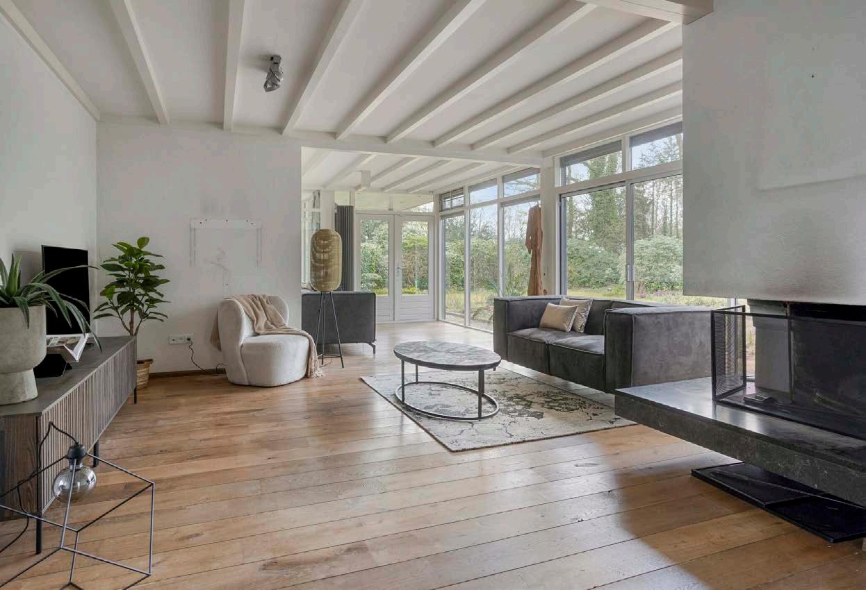 Je stapt binnen in de entreehal, waar voldoende plek is voor jassen, schoenen en een warm welkom. Vanuit hier loop je door naar de royale woonkamer. Het valt direct op hoeveel licht en rust deze ruimte biedt; de grote ramen en een schuifpui naar de tuin verbinden binnen met buiten en geven direct toegang tot de zonnige tuin op het zuiden. Perfect om te genieten van zomerse middagen of lange avonden buiten.
