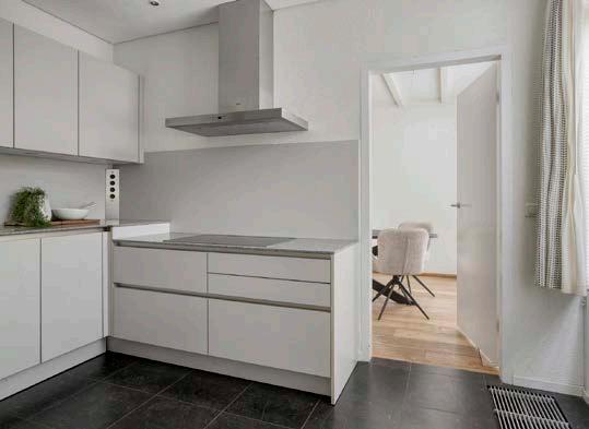 De keuken bevindt zich aan de voorzijde van de woning, praktisch ingericht en met alle basisvoorzieningen binnen handbereik. Hier is genoeg ruimte om je culinaire wensen te realiseren of om ‘s ochtends, met een kop koffie in de hand, de dag rustig te beginnen. Grenzend aan de keuken vind je de bijkeuken, die voorzien is van aansluitingen voor de wasmachine en plek biedt aan voorraad of andere spullen. Vanuit de bijkeuken kom je ook uit in de inpandige berging, handig voor fietsen, gereedschap of seizoensspullen die je buiten de deur wilt hebben.